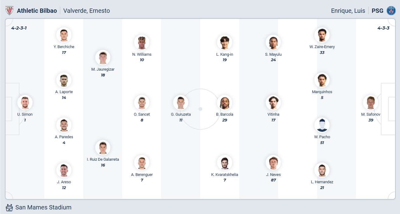 Lượt đấu thứ 6 vòng League Phase Champions League, Bilbao sẽ tiếp PSG trên sân nhà với mục tiêu giành một kết quả có lợi để có vị trí tốt trên bảng xếp hạng. Nhưng trước đối thủ mạnh hơn nhiều thì xem ra điều này khó thành hiện thực.